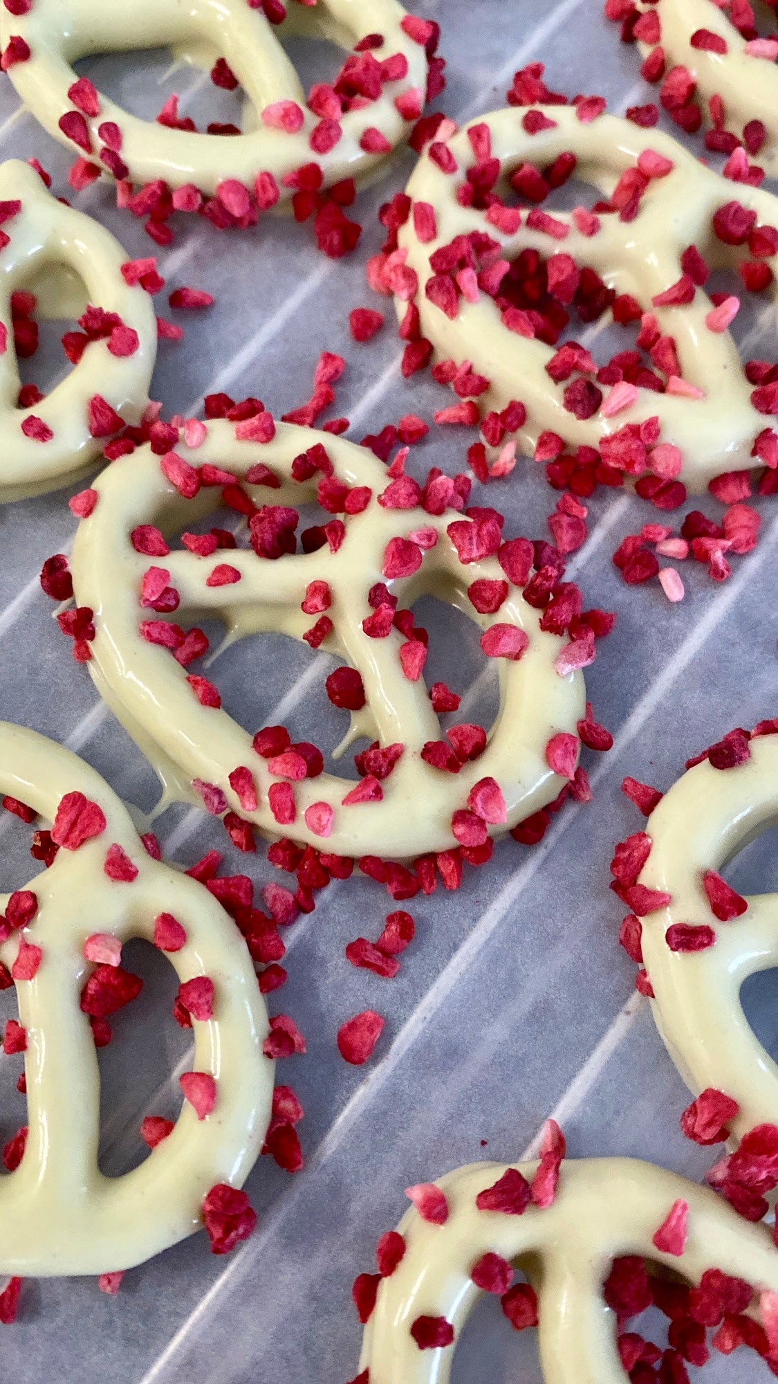 bretzel chocolat blanc - éclats pistaches et framboises